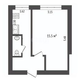 Планировка квартиры функциональна: изолированная комната 15,5 кв.м. , кухня 2,30 кв. м., с/у совмещен.