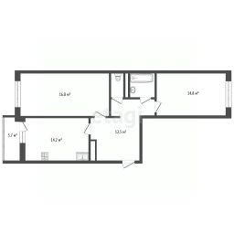 Просторная двухкомнатная квартира 65,7 м² в престижном Тюменском районе.