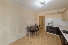 Кухня значительной площади оснащена всей необходимой техникой, которая остается новому владельцу: варочная панель, духовой шкаф и микроволновая печь.