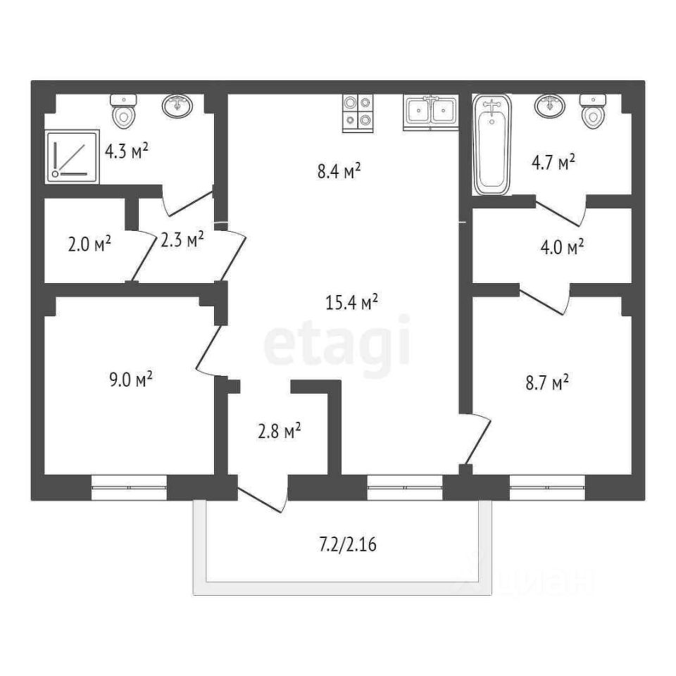 15,4 м²