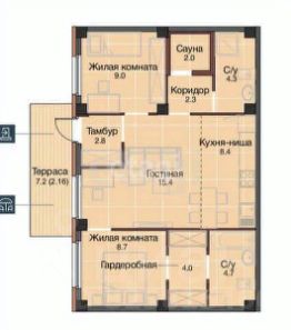 Площадь кухни15,4 м²