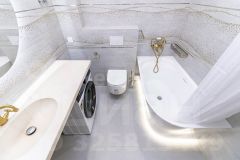 В ванной комнате установлена ванна, столешница и раковина из искуственного мрамора. три варианта подсветки.