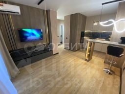 В квартире просторная кухня-гостиная 18 кв.м., спальня 12 м.кв., гардероб в прихожей и совмещенный санузел. В квартире выполнен красивый ремонт по дизайн проекту. Балкон облагорожен. В кухне установлен стильный кухонный гарнитур, в спальне кровать с матрасом , сделана просторная гардеробная. В ванной пол с подогревом, установлен водонагреватель.