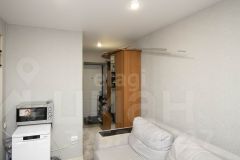 При продаже студии в стоимость входит кухонный гарнитур, холодильник, стиральная машина, диван, шкаф для хранения вещей и полотенцесушитель.