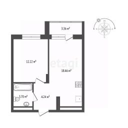Планировка квартиры продумана до мелочей: просторная кухня-гостиная площадью 18 кв.м с выходом на теплую лоджию, где можно создать уютный кабинет, игровую зону или уголок для медитаций. Спальная комната площадью 12 кв.м подарит вам спокойствие и комфорт для полноценного отдыха.