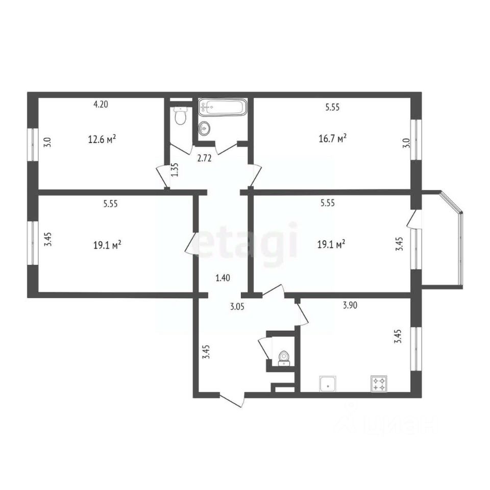- Планировка типа "распашонка": комнаты расположены на двух сторонах света,