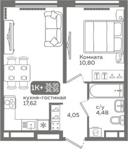 Прямая продажа от застройщика! Продается однокомнатная квартира в строящемся ЖК "Меридиан Слобода", срок сдачи: I-кв. 2027, общей площадью 36.95 м², на 4 этаже из 21. Площадь кухни — 17.62 м².