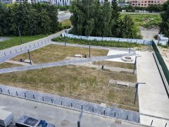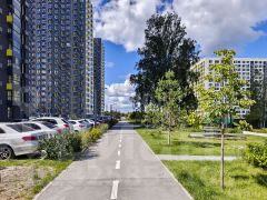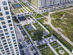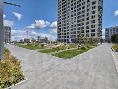 Благоустроенная территория: зелёные зоны, дорожки, освещение и видеонаблюдение.