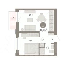 Однокомнатная квартира от застройщика с предчистовой отделкой в ЖК "Зарека" на 8 этаже. Общая площадь: 35.1 кв.м. Высота потолков 2.7 м.