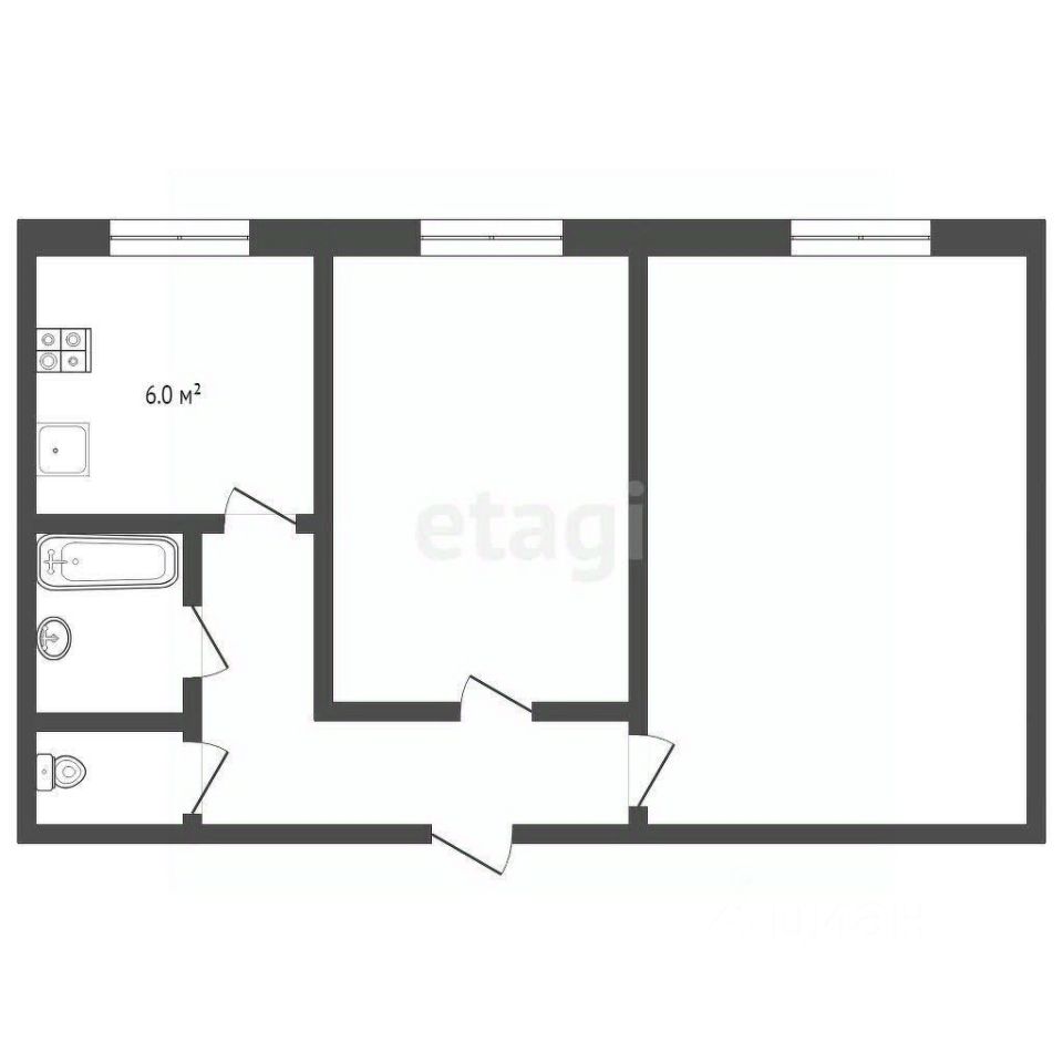 Общая площадь: 43,9 м2. Комнаты светлые, правильной формы: 17,1