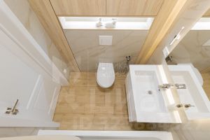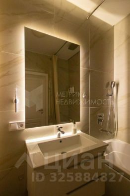 В ванной комнате тёплый пол и зеркало с подсветкой.
