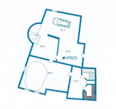 в цоколе расположен гараж на 2 машины 35 м2, бассейна с комнатой отдыха 46м2 и сауна с хамамом и джакузи.