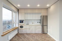 Ремонт делали для себя из высококачественных материалов, в построчной установлена стиральная машина, кухня оборудованная встроенной бытовой техникой.