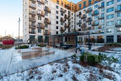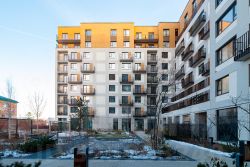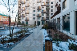 В квартале обустроена центральная площадь с дождевыми садами и возможностью проведения ярмарок и культурных мероприятий.