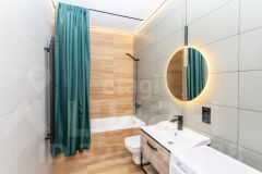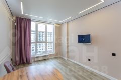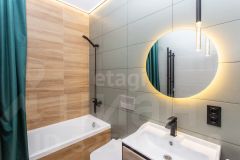 В квартире выполнен качественный дизайнерский ремонт в приятных классических тонах, натяжные потолки со световыми линиями и встроенным карнизом.