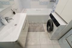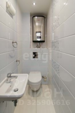 Готовое функциональное пространство: раздельный санузел с дополнительной раковиной, водонагревателем, стиральной машиной и практичным встроенным шкафом.