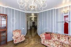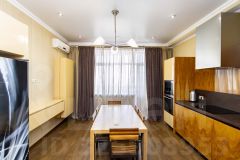 Высота потолков в квартире составляет 3 метра, что создает ощущение простора и свободы. Внутренний интерьер выполнен с использованием качественных и дорогих материалов, что подчеркивает статус вашего жилья. Входные группы оформлены с изысканным вкусом: полы из натурального гранита, стены с декоративной штукатуркой и элементы отделки камнем создают атмосферу уюта и стиля.