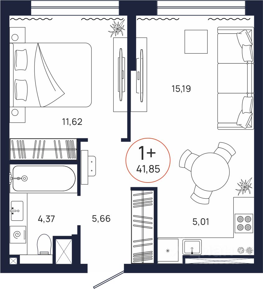 Общая площадь41,85 м²
