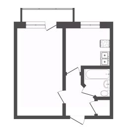 Планировка функциональная: изолированная кухня позволяет комфортно готовить, не беспокоясь о запахах в жилой зоне, а просторная комната легко вмещает спальную и гостевую зоны. Санузел совмещенный, отделан влагостойкими пластиковыми панелями, установлена новая сантехника.