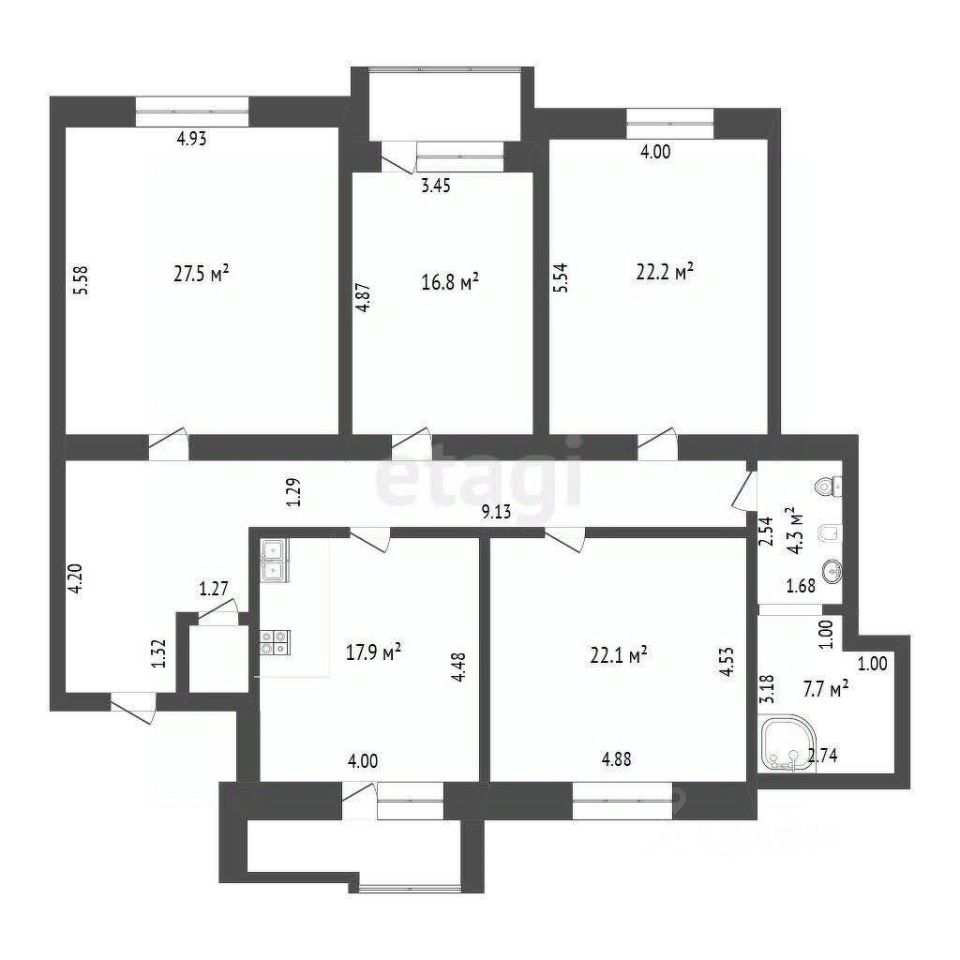 Квартиру можно приобрести как для собственного комфортного проживания большой семьёй, так и для переоформления под коммерческую недвижимость с возможностью сделать отдельный вход с улицы. Также можно при желании разделить на 2 квартиры, так как есть 2 стояка водоснабжения.