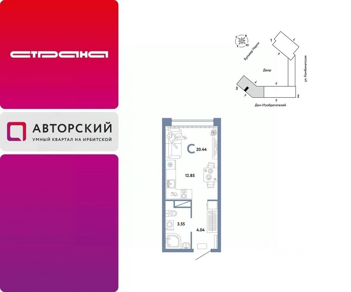 Продается 1комнатная квартира на 5 этаже от застройщика Страна Девелопмент. Площадь квартиры 20,44 кв. м.