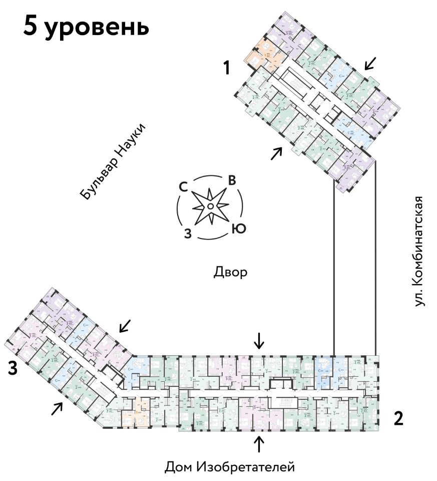 • Во дворах нет машин, шума, выхлопных газов и посторонних людей. Всё пространство разделено на зоны по интересам и возрастам. Для детей — игровые площадки из эко-материалов и мягкая защита от падений. Для взрослых — зоны отдыха, воркаут-площадки и тропинки для неспешных прогулок.