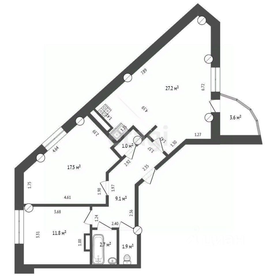 Квартира отличается просторной планировкой и высокими потолками 2,7 м, что создает ощущение свободы и комфорта.