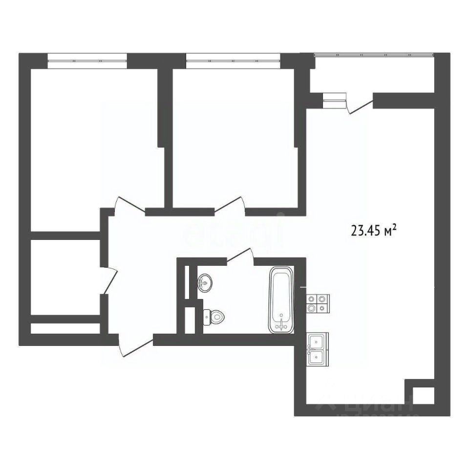 - Просторная гостиная: 23,46 м²