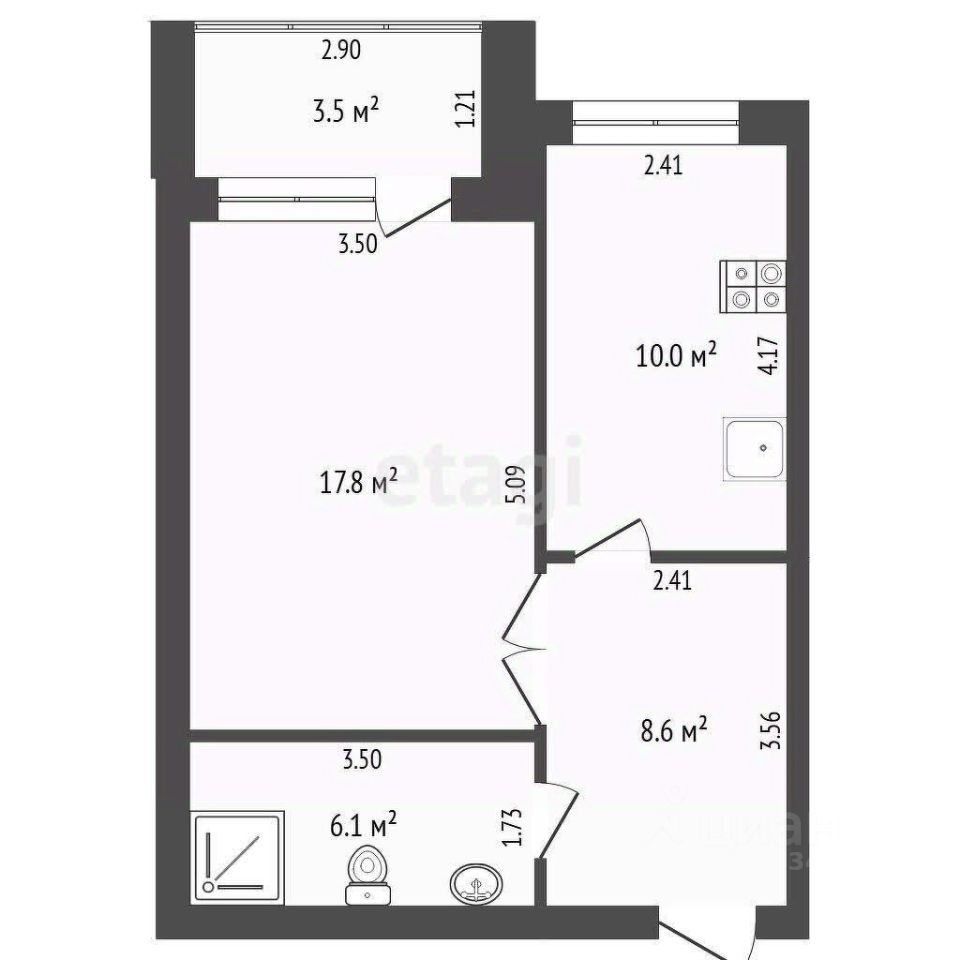 Просторная 1-комнатная квартира 42,5 кв.м в кирпичном доме!
