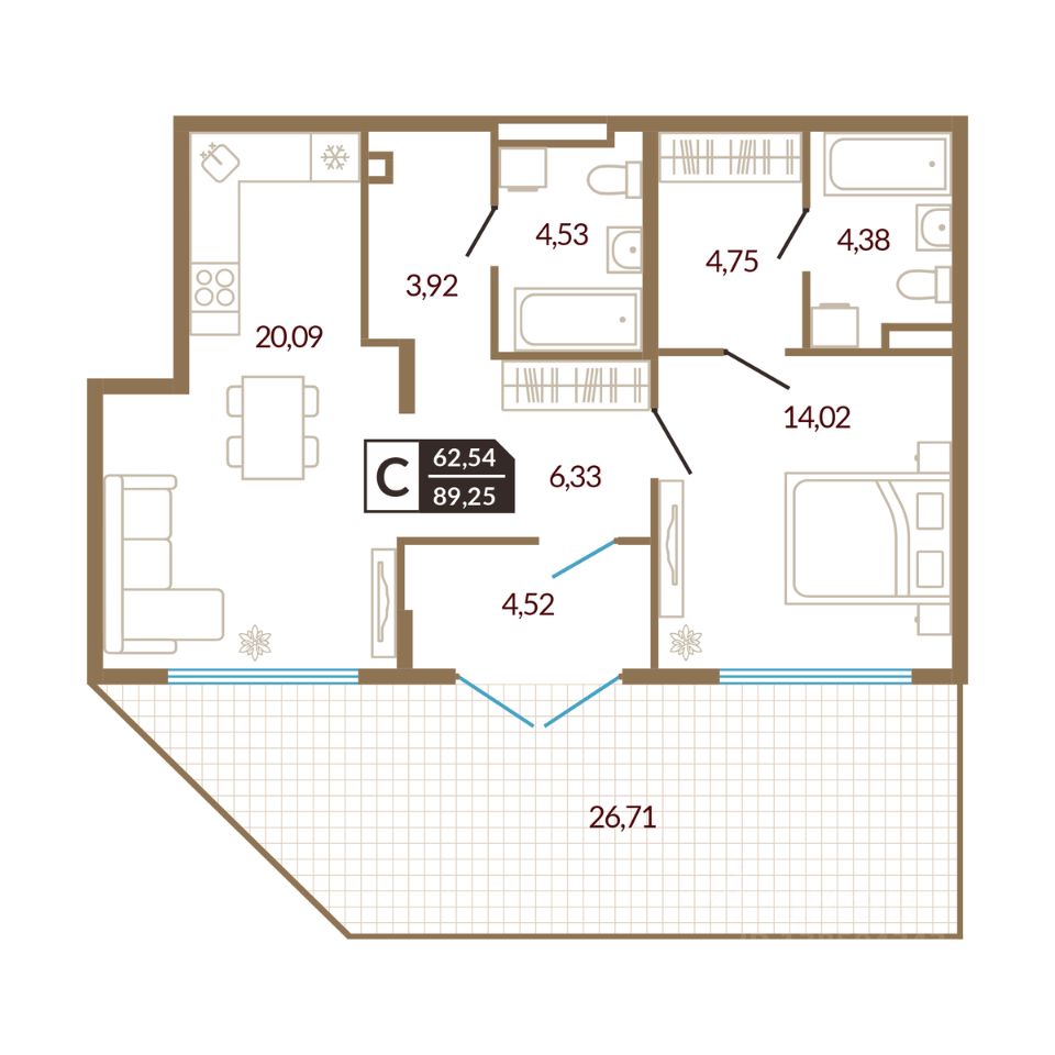 62,54 м²