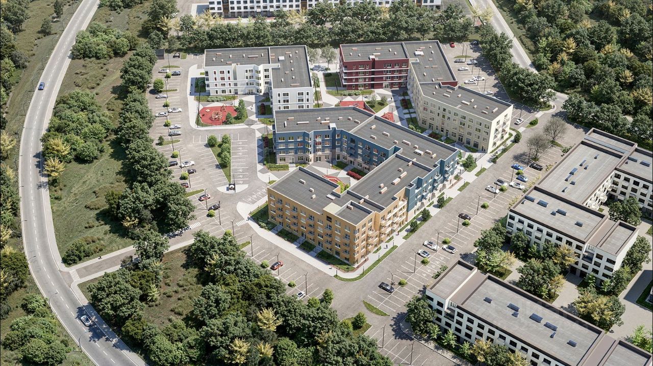 Квартал состоит из трех четырехэтажных домов, выполненных в современном скандинавском стиле.