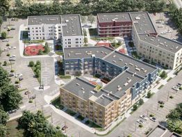 Квартал состоит из трех четырехэтажных домов, выполненных в современном скандинавском стиле.