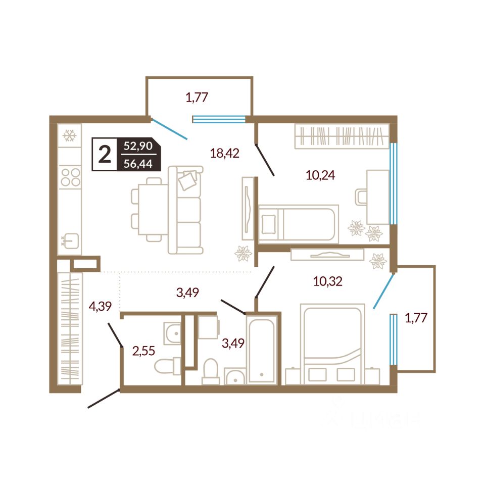 56,44 м²