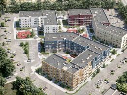 Квартал состоит из трех четырехэтажных домов, выполненных в современном скандинавском стиле.