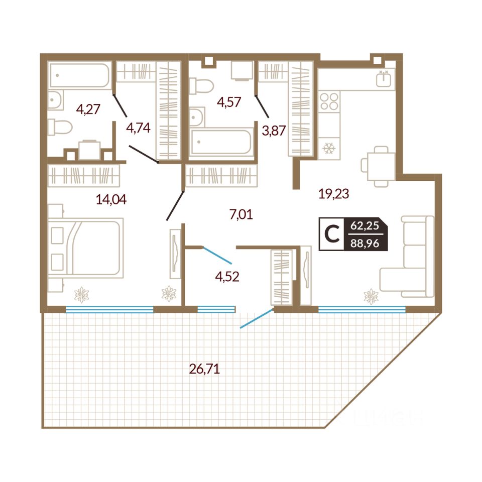 62,25 м²