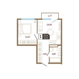 Общая площадь35,93 м²