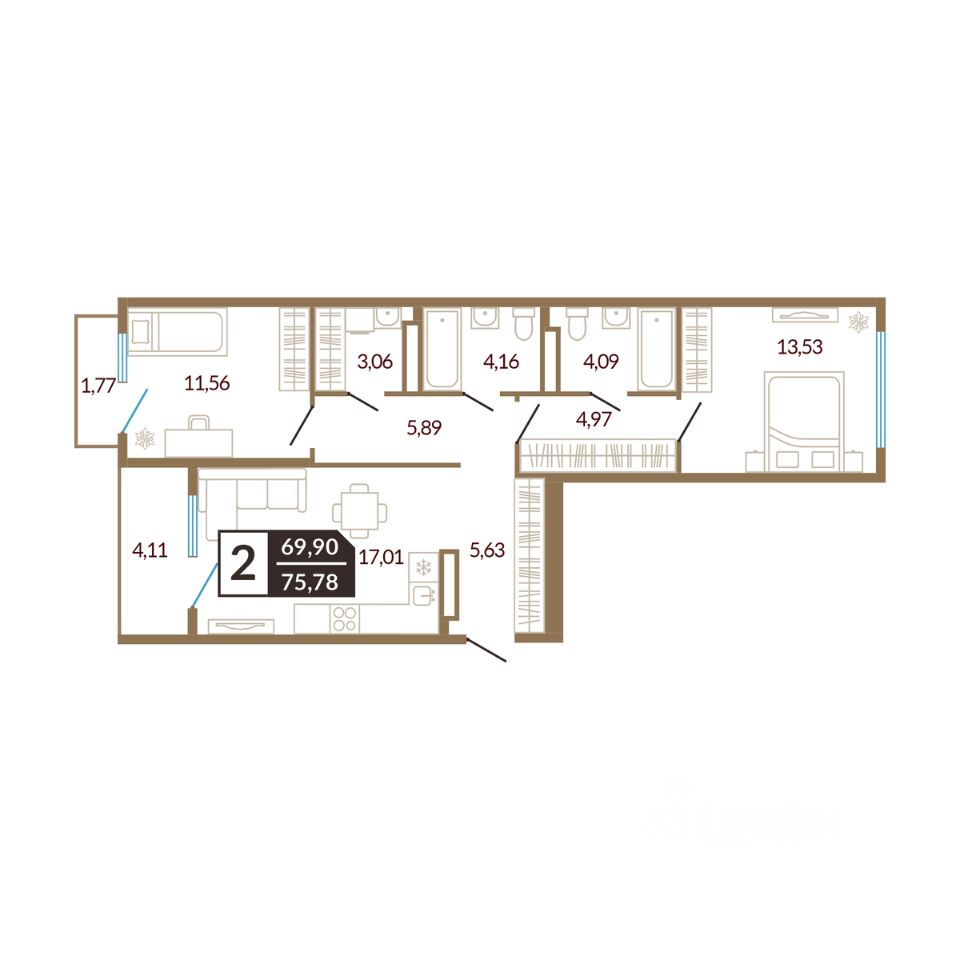 75,78 м²