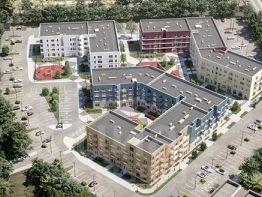 Квартал состоит из трех четырехэтажных домов, выполненных в современном скандинавском стиле.