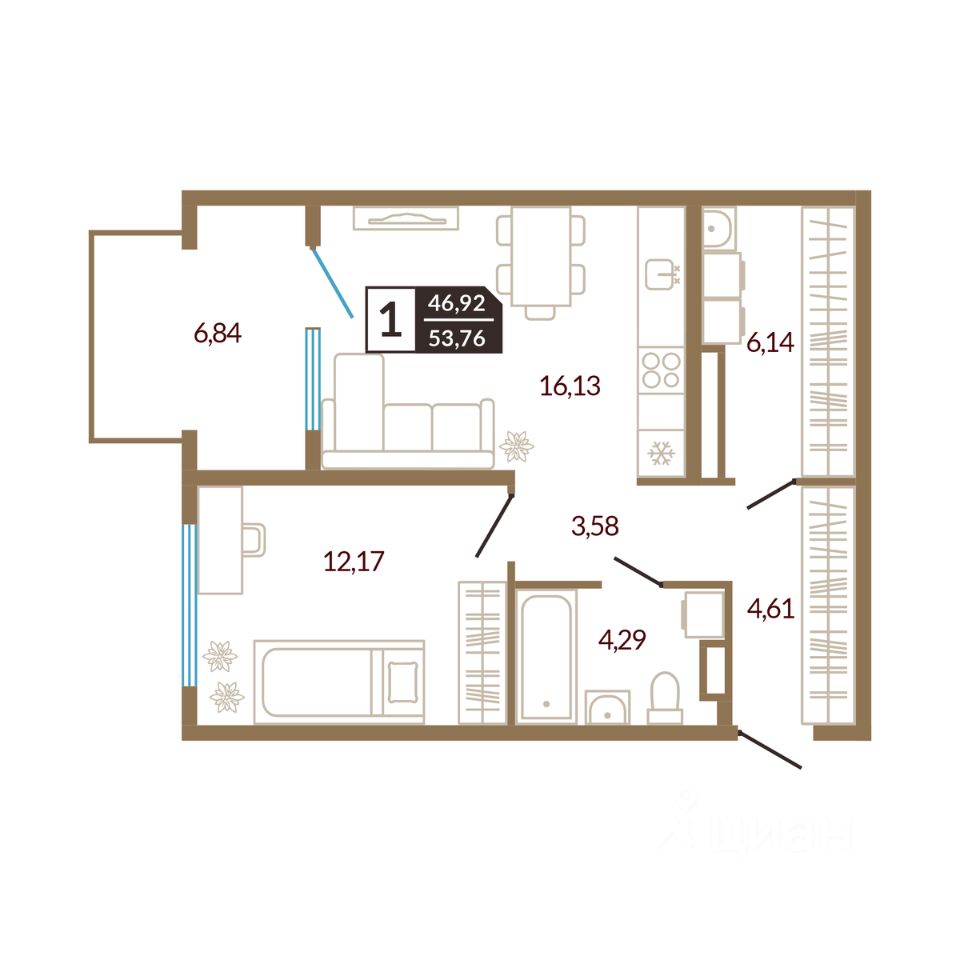 53,76 м²