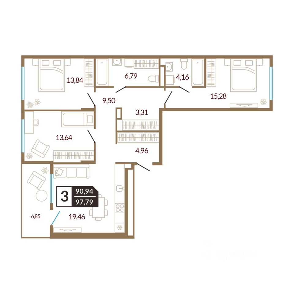 97,79 м²
