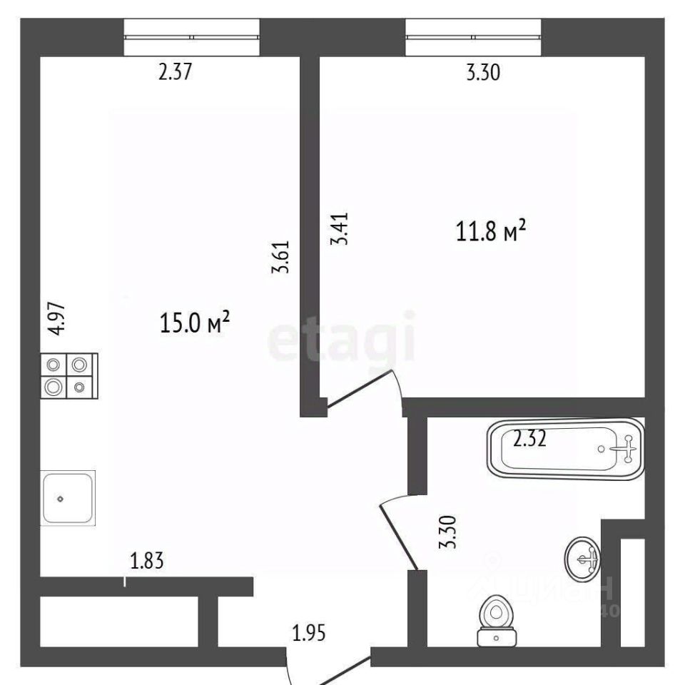 На продаже отличная квартира формата 1+ (кухня-гостиная + спальня) в новом жилом комплексе в центре города (район ул. М. Горького).