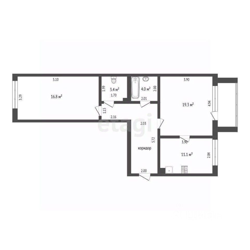 Просторная и комфортная квартира с высокими потолками в кирпичном доме индивидуального проекта площадью 68 кв.м.