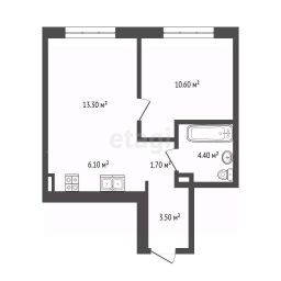 Правильной формы, общая плашадь 38,2 кв.м.