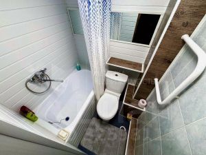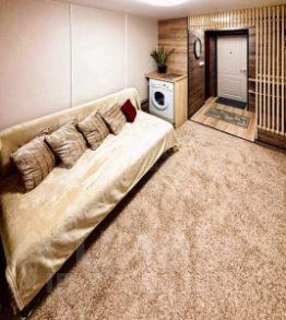 В студии сделан свежий ремонт, и никто здесь не проживал. Все удобства остаются новому владельцу: холодильник, стиральная машина и диван. В санузле полноценная ванна, что является дополнительным плюсом.