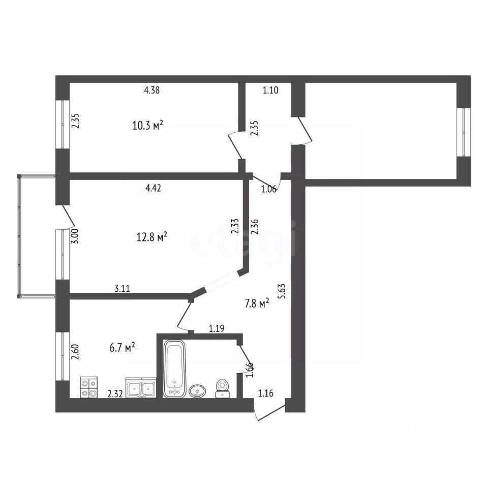 Продается трехкомнатная квартира в районе с развитой инфраструктурой, в 5 минутах езды от центра города Тюмень.