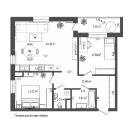 Квартира формата 2+ с видом на реку Тура в ЖК "Европейский берег"
