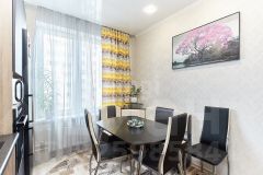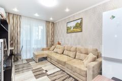 В квартире выполнен аккуратный косметический ремонт с практичными и современными материалами: ламинат на полу, натяжные потолки и оклейка стен обоями. Большая часть мебели и бытовой техники остается, что позволяет новому владельцу минимизировать дополнительные затраты и усилия после покупки.