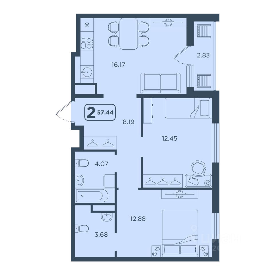 Продаётся 2-комнатная квартира в строящемся доме (ГП-1), срок сдачи: IV-кв. 2028, общей площадью 57.44 кв.м., на 11 этаже. Новый жилой комплекс "Континент" от Специализированного застройщика "Расцвет" расположен по адресу: г. Тюмень, по ул. Червишевский Тракт.
