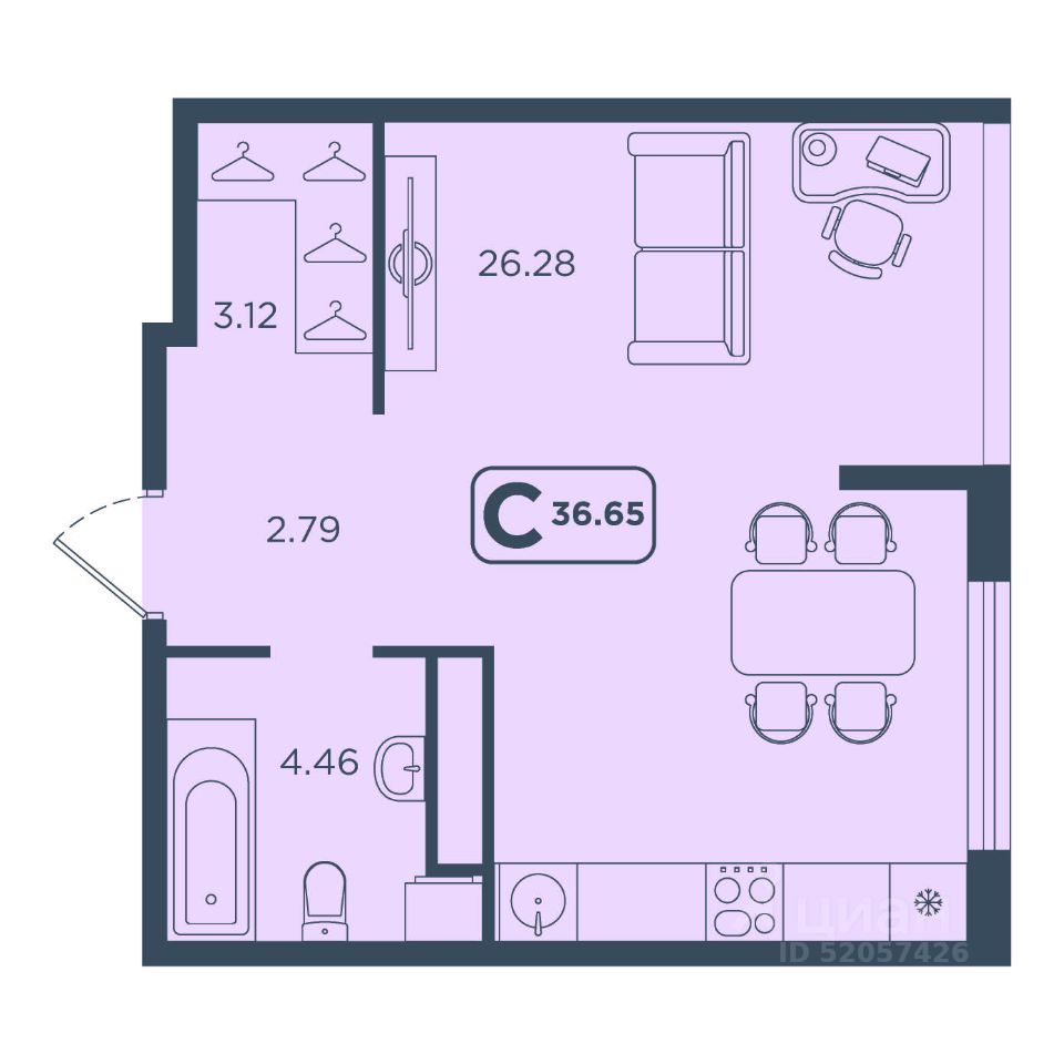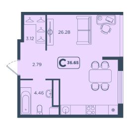 36,65 м²