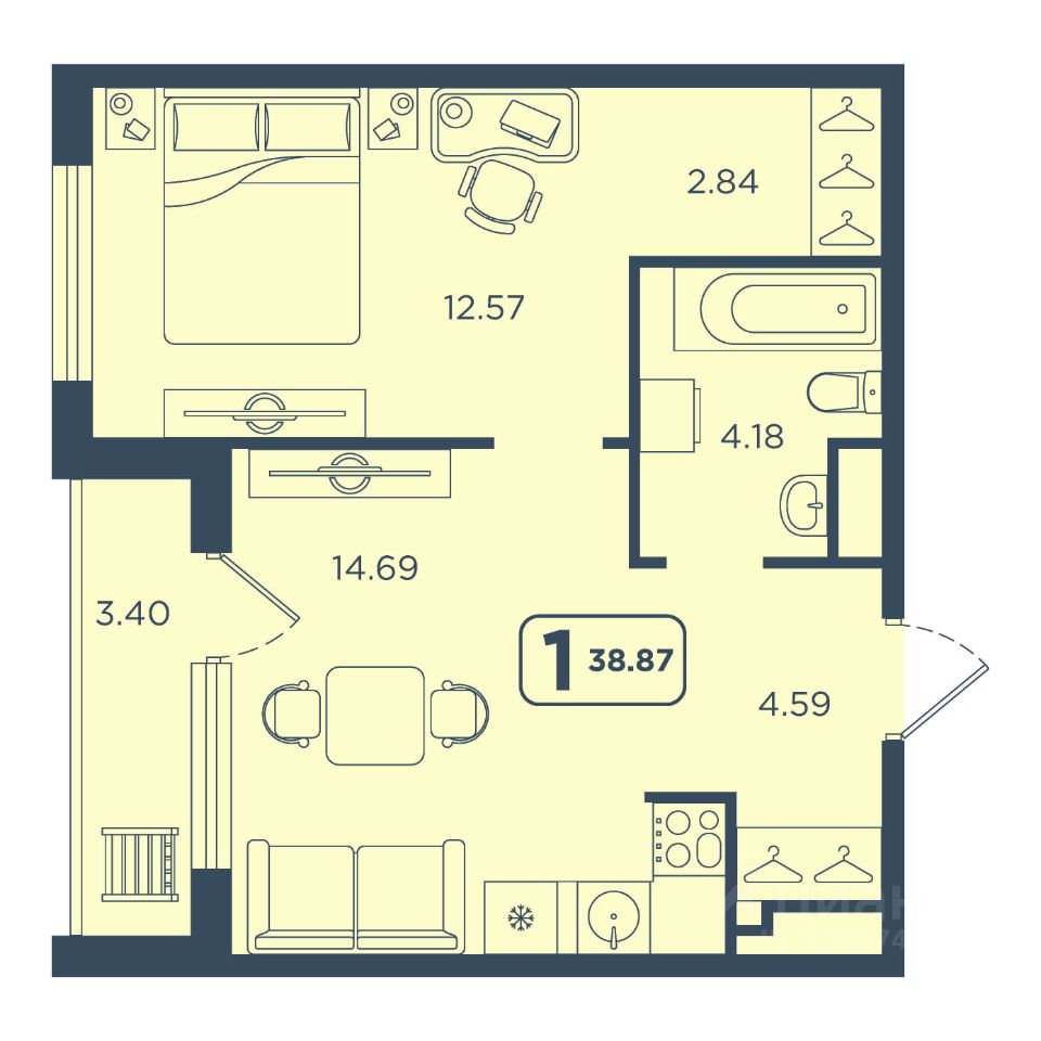 Продаётся 1-комнатная квартира в строящемся доме (ГП-1), срок сдачи: IV-кв. 2028, общей площадью 38.87 кв.м., на 18 этаже. Новый жилой комплекс "Континент" от Специализированного застройщика "Расцвет" расположен по адресу: г. Тюмень, по ул. Червишевский Тракт.